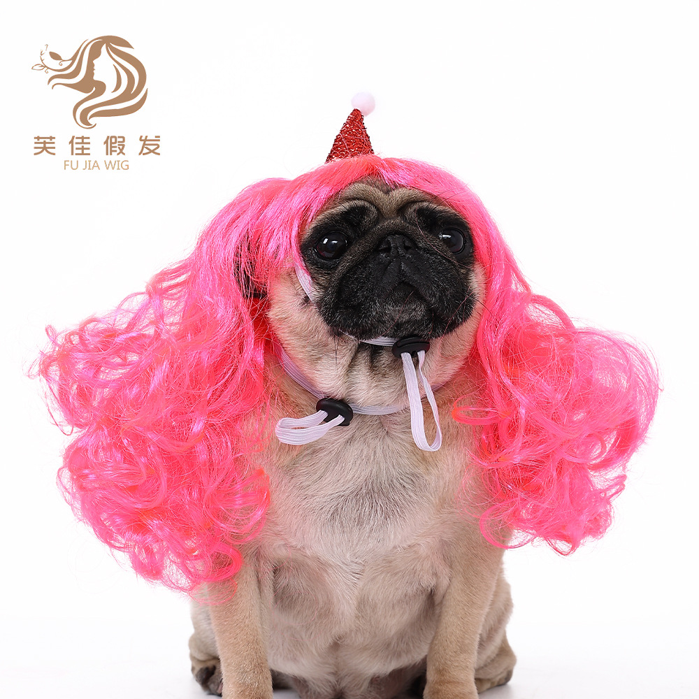 Wig kucing dan anjing hewan peliharaan, wig universal lintas batas perlengkapan pesta Natal rambut keriting gelombang besar