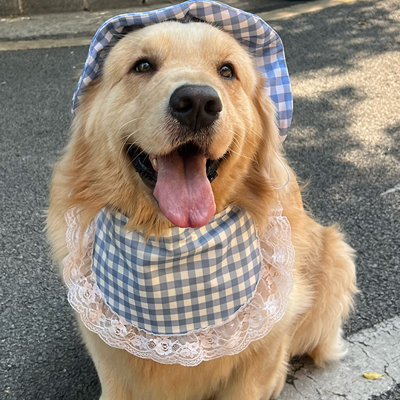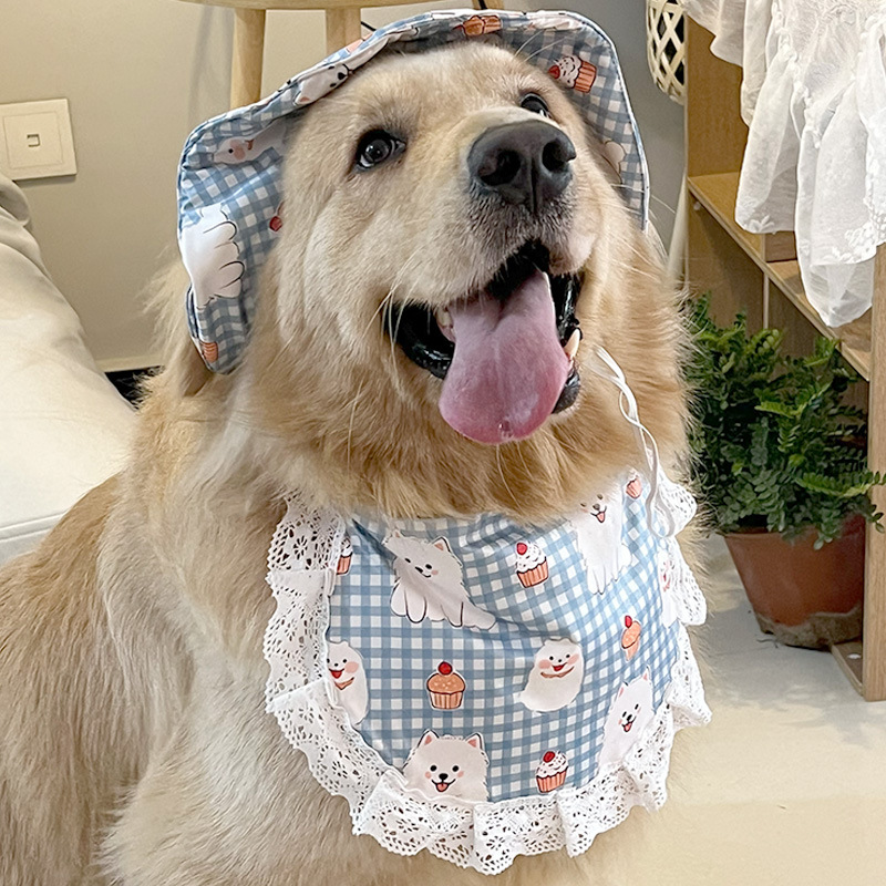 Set Topi Baret Anak Anjing Kucing Tali Pita Kupu-Kupu Renda Renda Beruang Kecil Kelinci Motif Koboi Kotak-Kotak Kartun Hewan Peliharaan