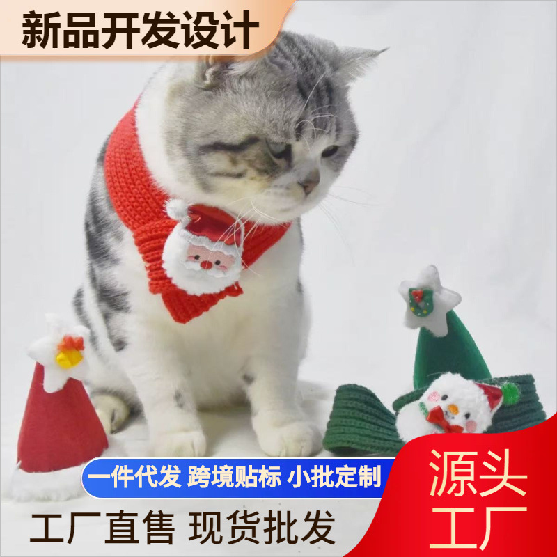 Pabrik perhiasan natal persediaan pesta kucing Natal Eropa dan Amerika gaun lintas batas topi merah Natal hewan peliharaan