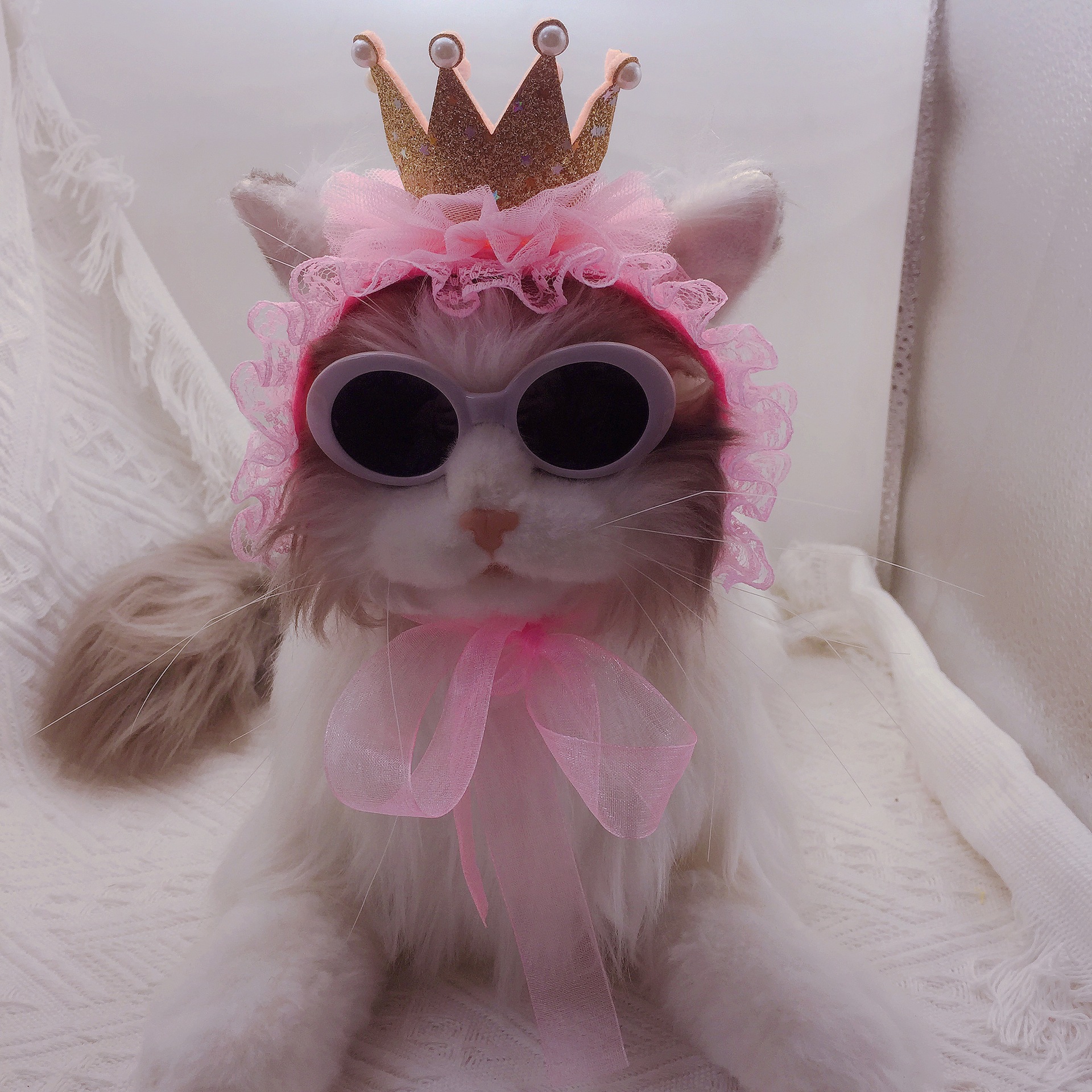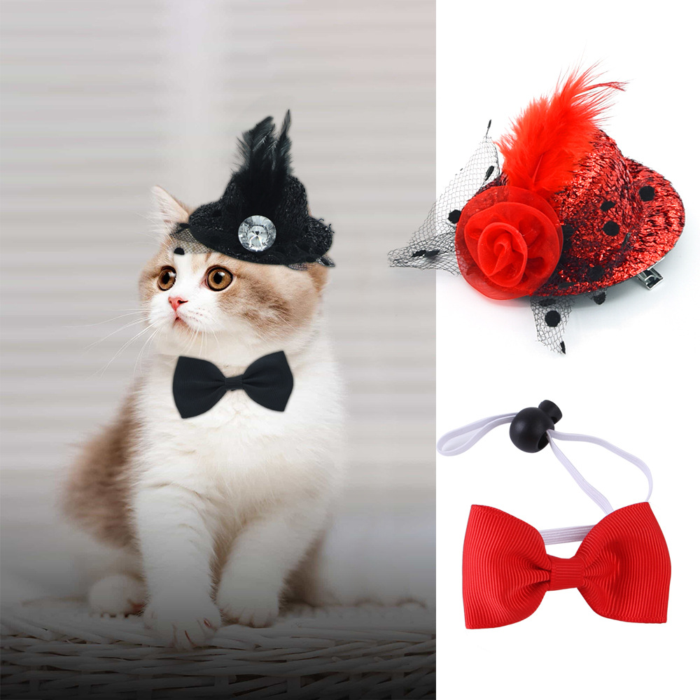 Setelan hiasan kepala hewan Kesayangan, topi bulu wanita, setelan kerah pita, perhiasan kucing