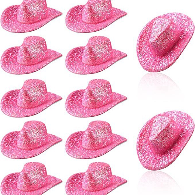 Topi koboi wanita neon Mini topi koboi barat perlengkapan pesta disko topi kecil merah muda warna-warni