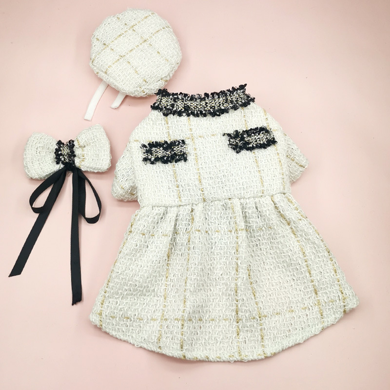 Rok hewan peliharaan gaya Chanel pakaian anjing lucu Korea Selatan topi marzis kucing pakaian anjing