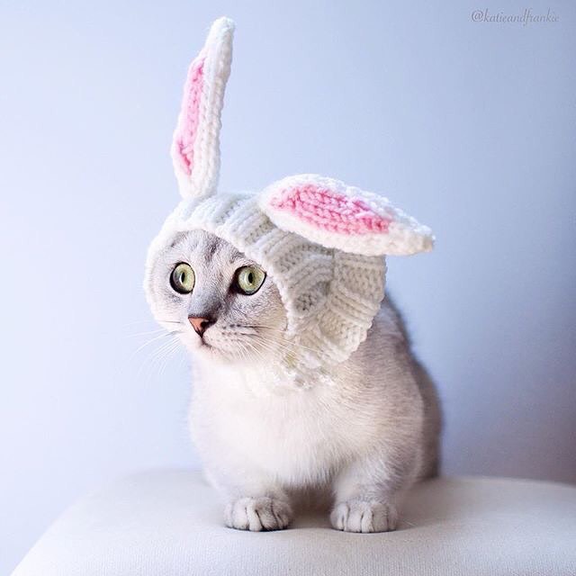 Topi rajut kelinci putih tahan angin, topi anjing bucket Prancis rajut Halloween hangat musim gugur dan musim dingin