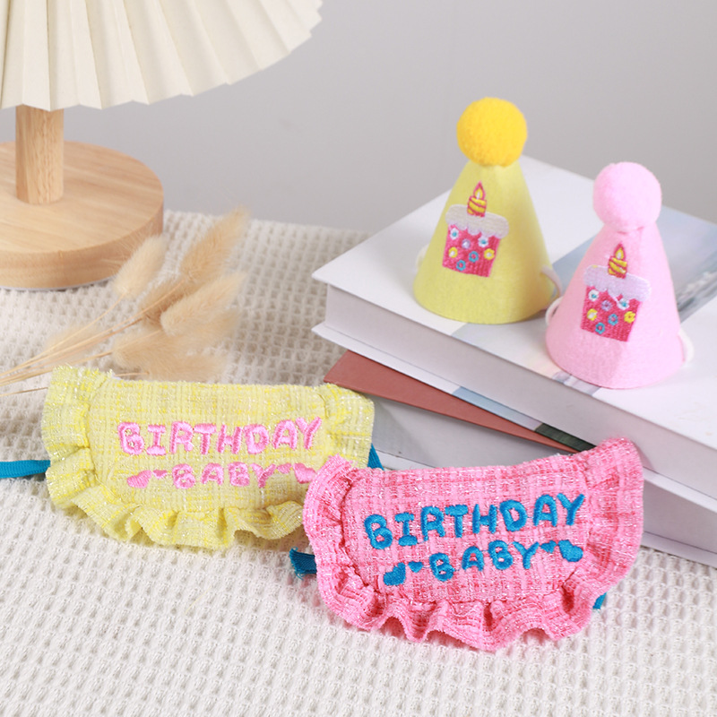 Syal renda bordir kue, topi glitter huruf untuk anjing kecil, syal kucing suasana ulang tahun