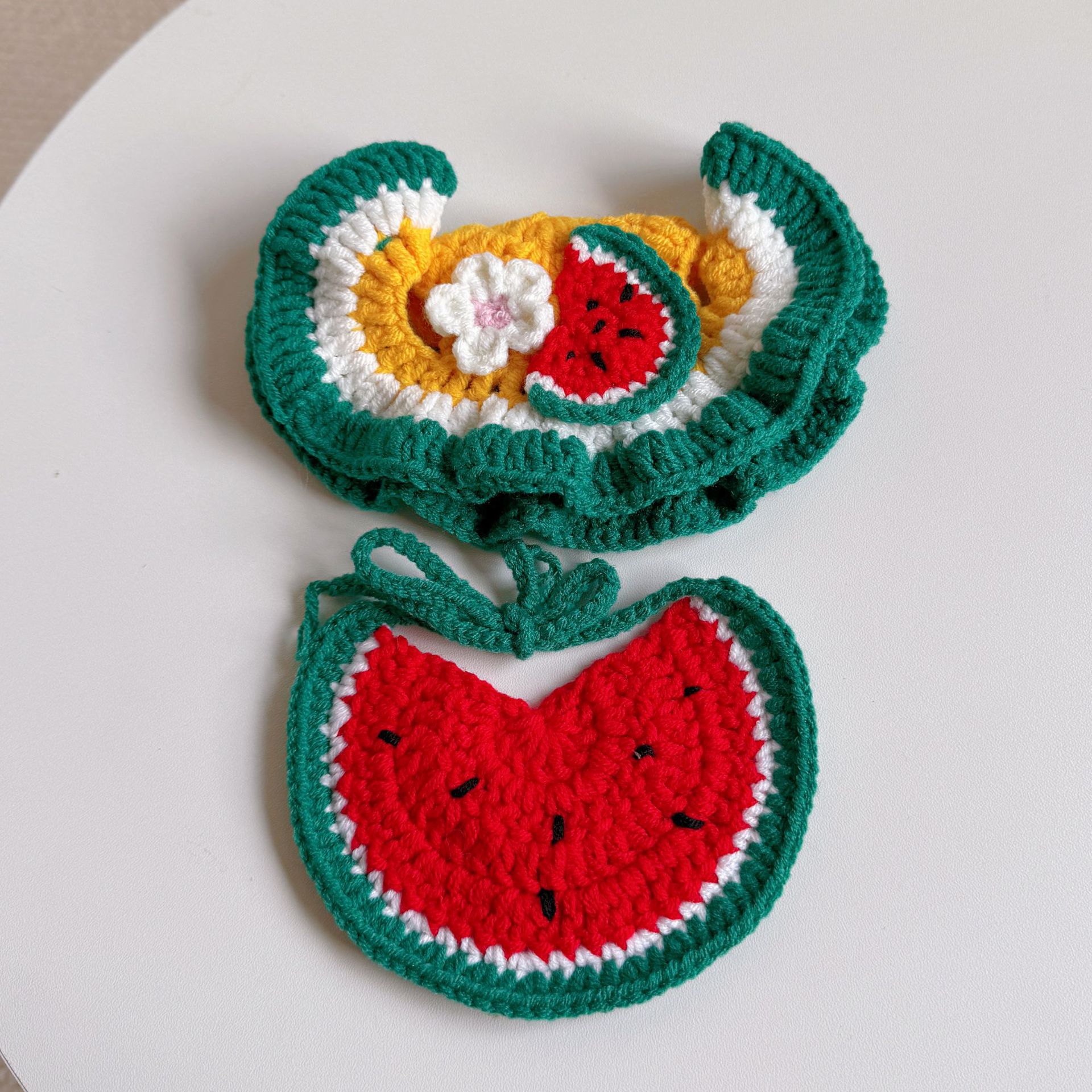 Topi Semangka Hewan Peliharaan Musim Panas Sarung Kepala Boneka Boneka Sarung Bib Pakaian Dingin Kalung Topi Kerah Anjing Kucing