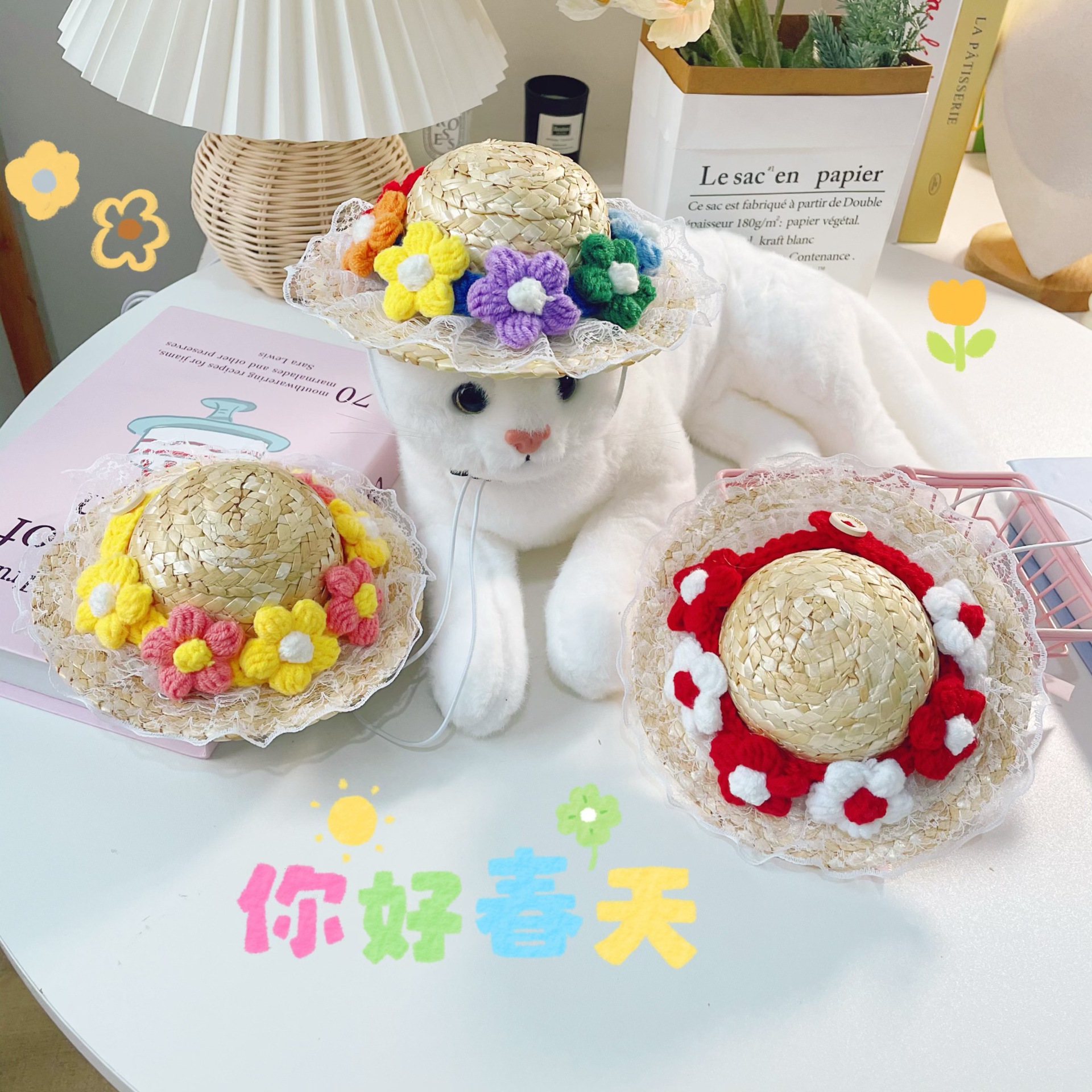 Topi Bunga Berwarna Kucing Hewan Peliharaan Model Baru Topi Pelindung Matahari Luar Ruangan Anjing Hewan Peliharaan Musim Panas Bentuk Tenun Estetika