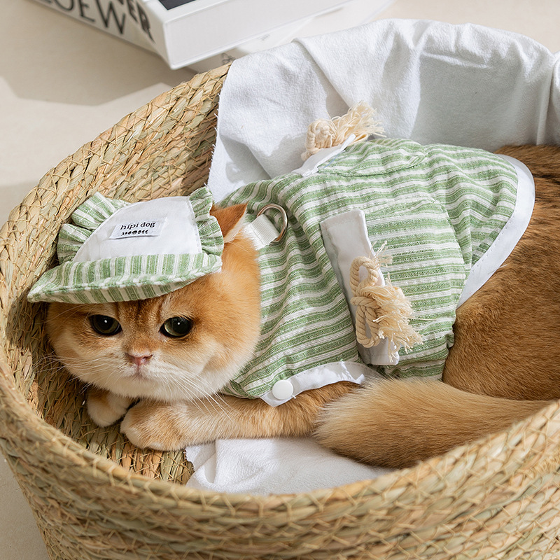 Set Topi Tank Top Putri Bergaris Sederhana Musim Semi dan Musim Panas Kucing Tidak Berbulu Kucing Anak Anjing Pakaian Kucing Hewan Peliharaan