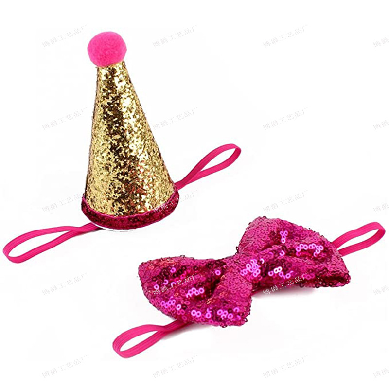 Topi pesta ulang tahun hewan peliharaan, topi bulu berpayet untuk pesta ulang tahun kucing anjing