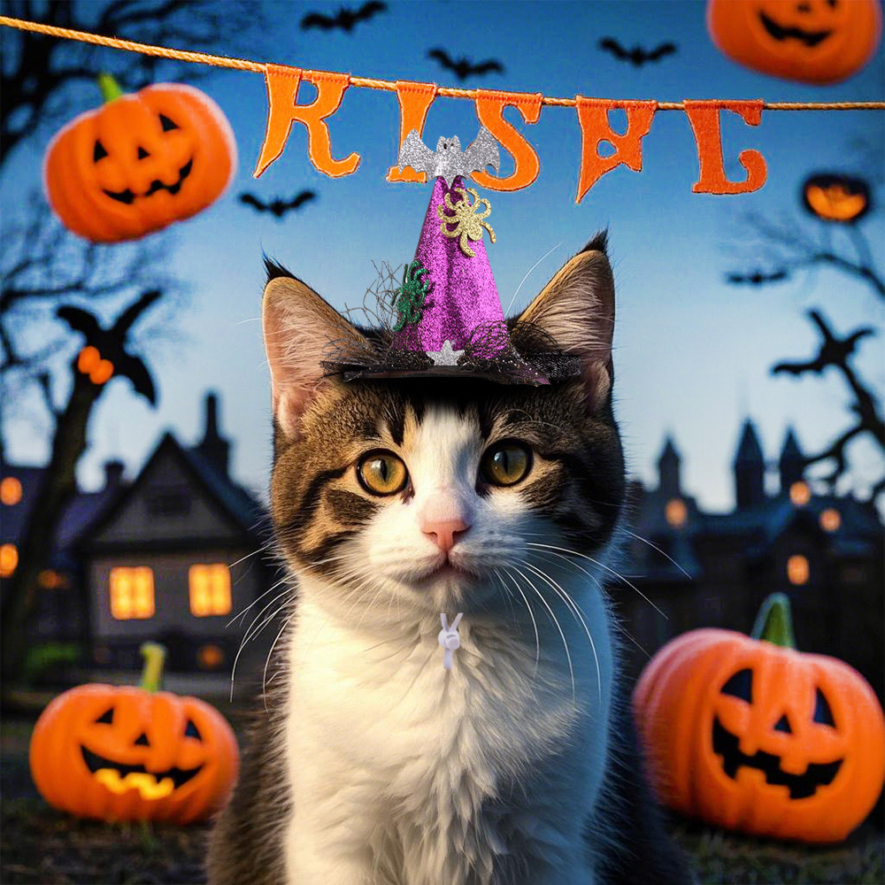 Crossborder Halloween Hewan Peliharaan Topi Penyihir Laba-laba Kelelawar Kucing Topi Penyihir Anjing Topi Lucu Hiasan Kepala Hewan Peliharaan