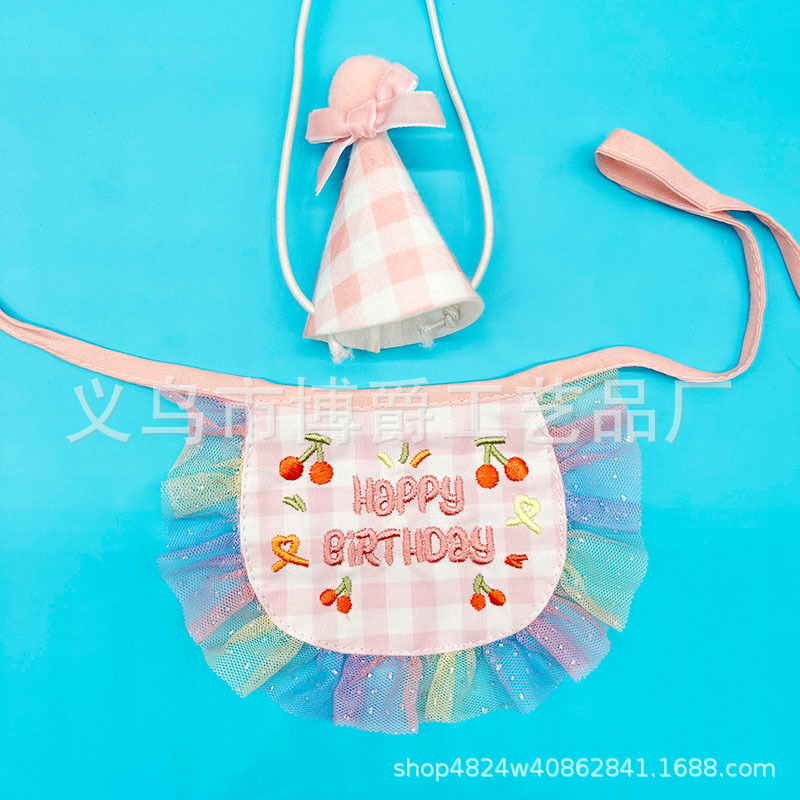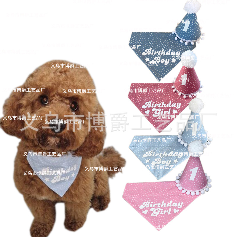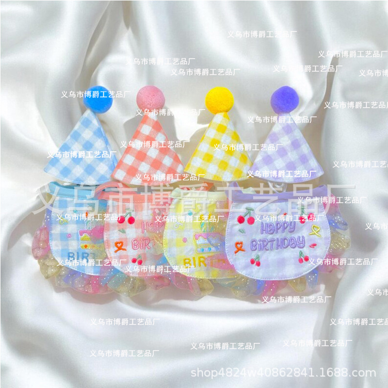 Handuk Air liur Hewan Peliharaan Lintas Batas Ulang Tahun Topi Syal Dekorasi Pesta Ulang Tahun Anjing Kucing Set Grosir