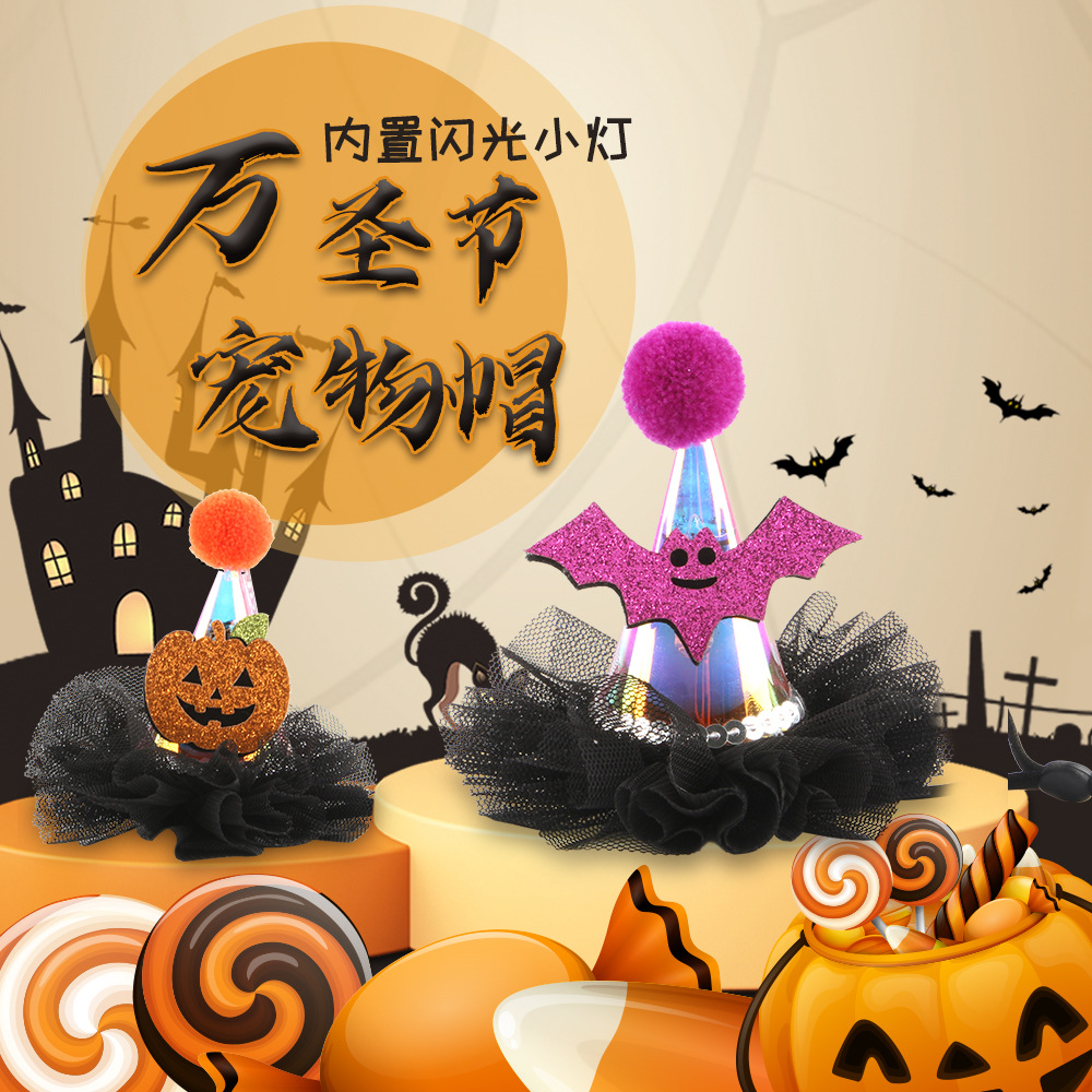 Topi pesta hewan peliharaan Halloween baru lintas batas topi anak anjing Halloween kerah festival hantu topi bercahaya Wansheng