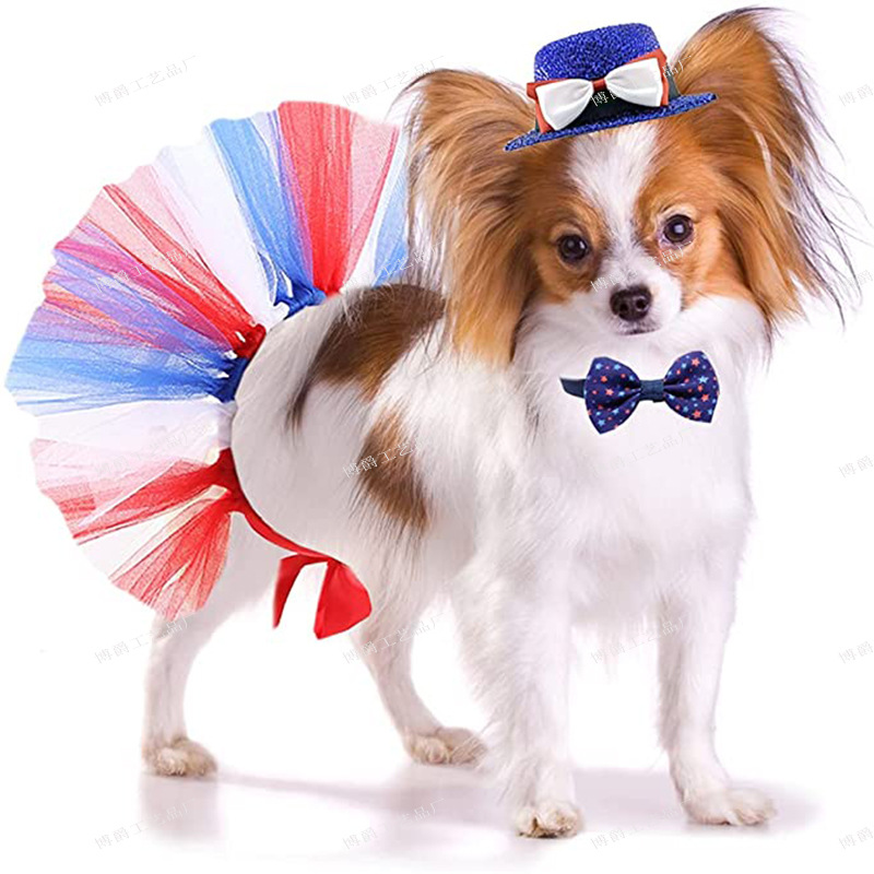 Dekorasi Pesta Hari Kemerdekaan hewan peliharaan rok jala anjing topi Hari Kemerdekaan bintang dekorasi dasi kupu-kupu perlengkapan Gaun