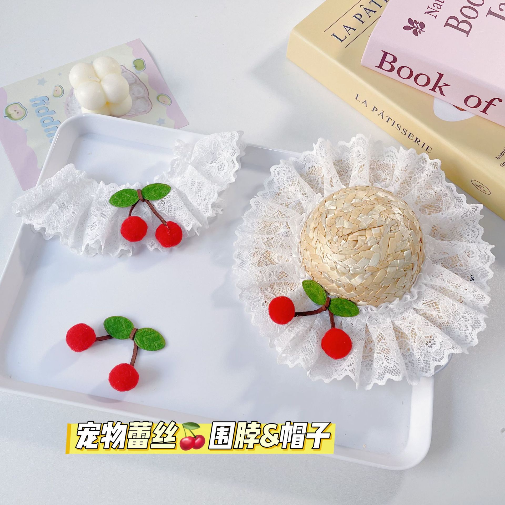 Topi Renda Ceri Hewan Peliharaan Lintas Batas Leher Lucu Anjing Topi Jerami Renda Gaya Sederhana Pabrik Grosir