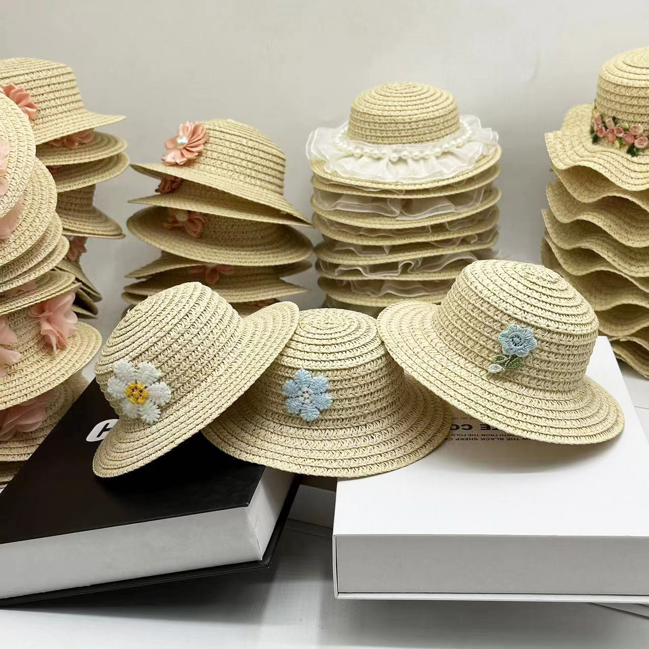 Topi bayi katun topi jerami mainan buatan tangan baru topi hewan peliharaan mini pinggiran besar topi matahari boneka