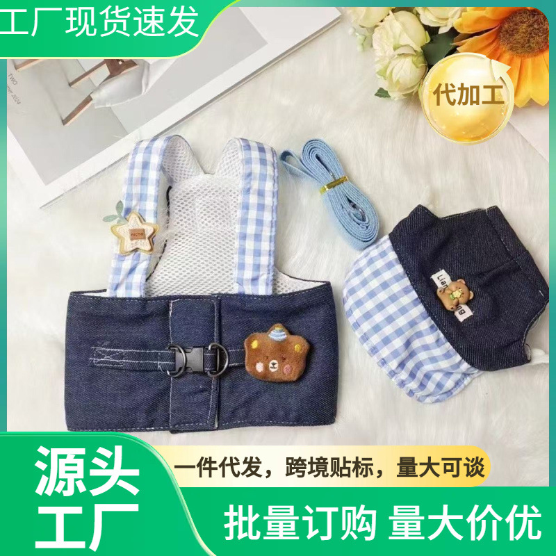 Tali Tarik Punggung Dada Hewan Peliharaan Musim Semi Musim Gugur Pakaian Anjing Kucing Beruang Kecil Koboi Dada Lucu Hewan Peliharaan Model Pendek Dapat Traksi