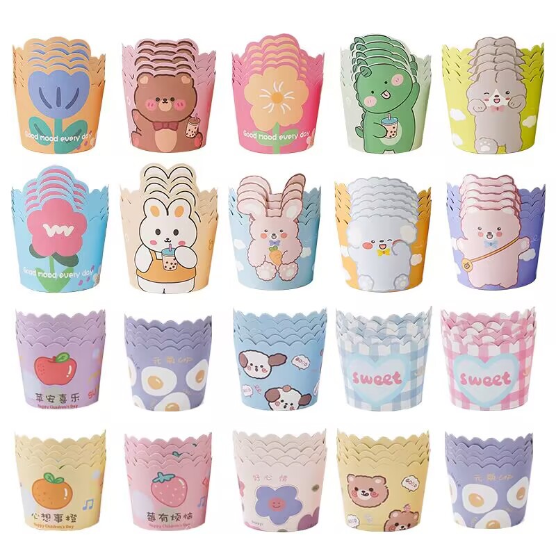 Kartun beruang kelinci kucing anjing cangkir kertas kue muffin cangkir Tempat kertas roti kotak kemasan cangkir kue bunga cangkir kertas kue