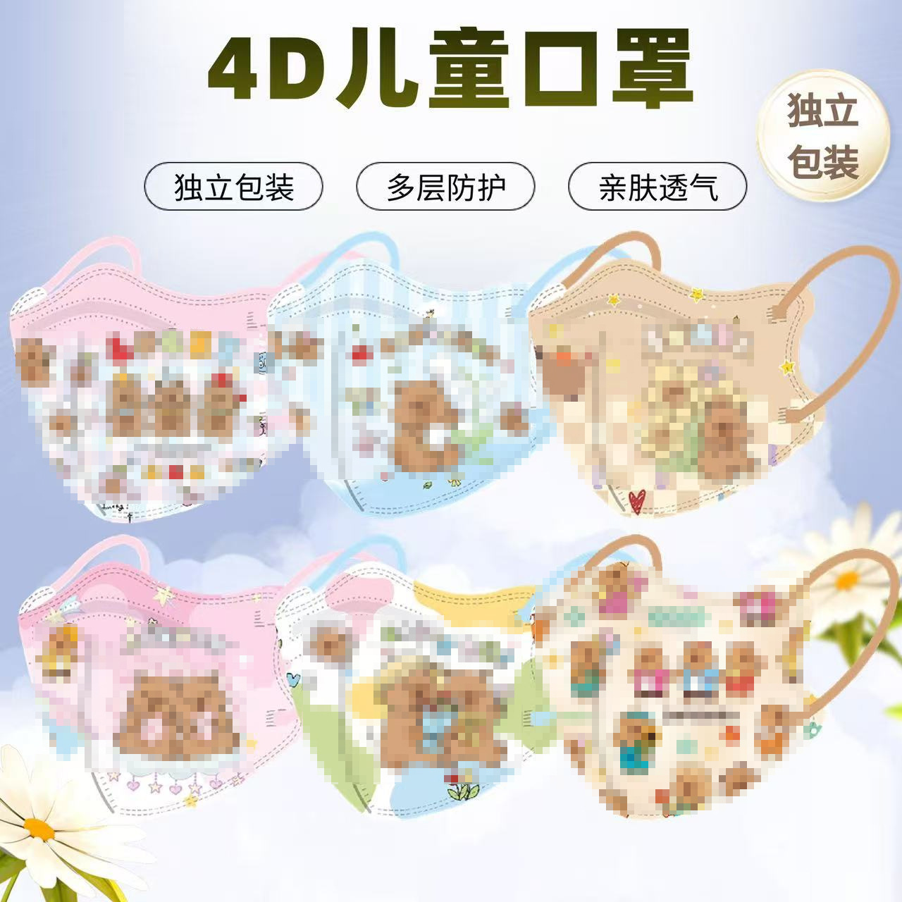 Kapibarakaton 4D pelindung sekali pakai 4 lapisan masker babi guinea lucu untuk anak-anak sekolah dasar