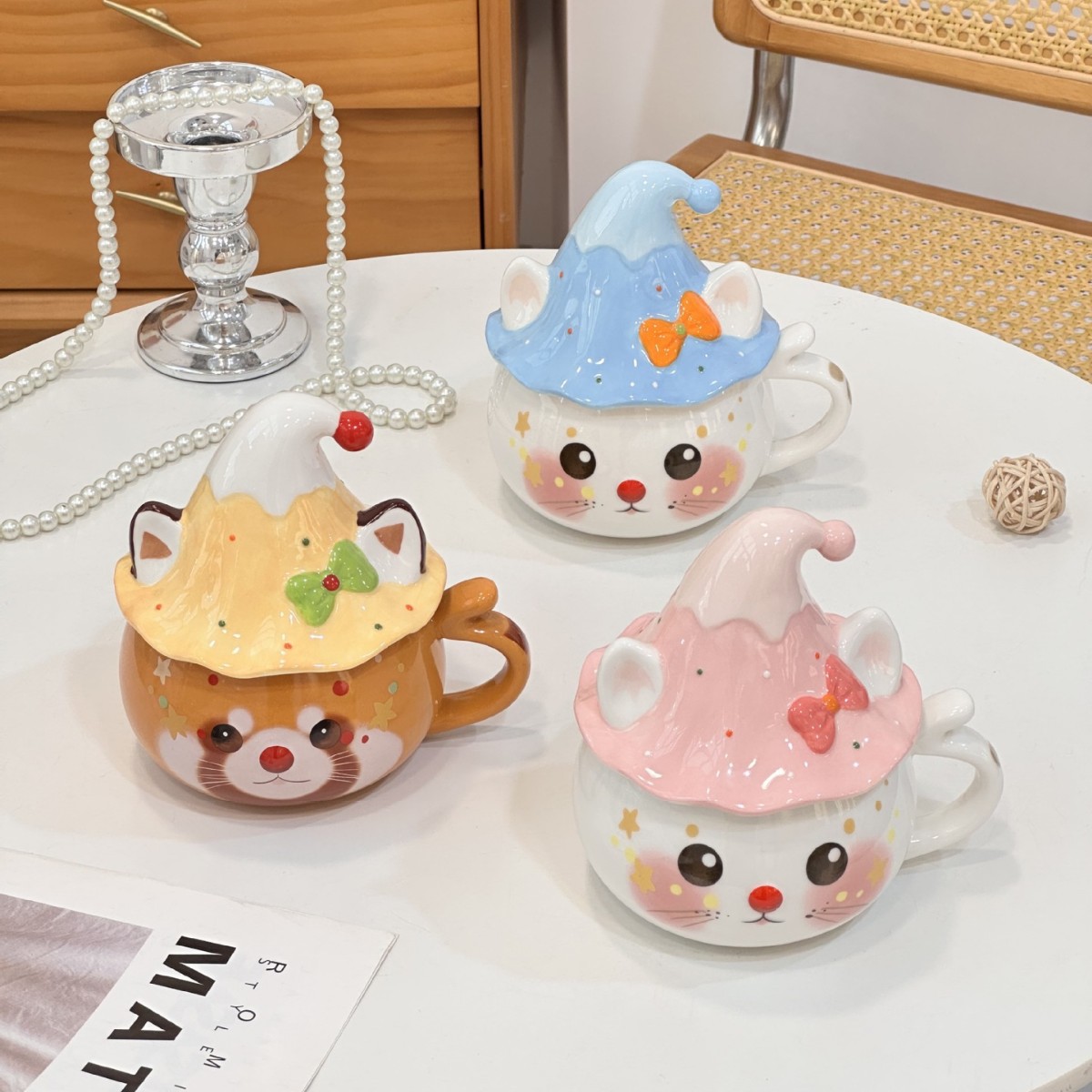 原创设计可爱卡通魔法帽猫咪牛奶杯咖啡杯陶瓷杯学生生日礼伴手礼