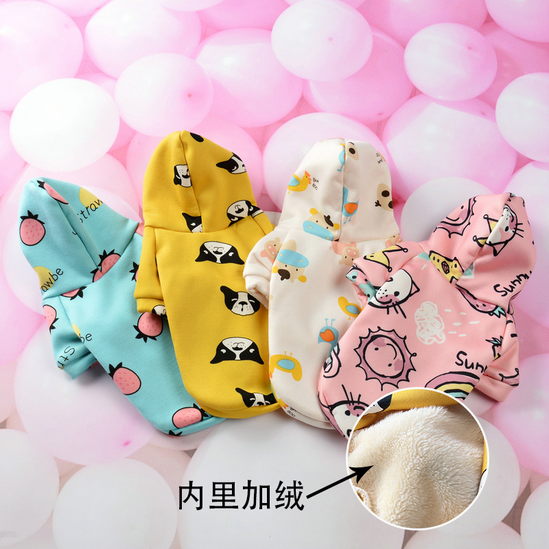 Baju hewan peliharaan cetak kartun sweter dua kaki tebal fleece-lined pakaian anjing peliharaan hoodie musim gugur dan musim dingin pakaian kucing