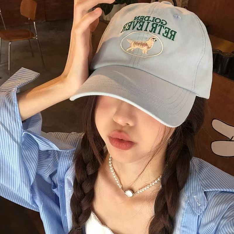 可爱狗狗刺绣棒球帽女夏季韩版ins百搭大头围鸭舌帽男户外防晒帽