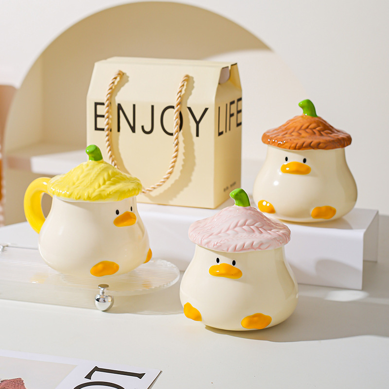 Gelas keramik bebek lucu kreatif dengan hadiah tangan