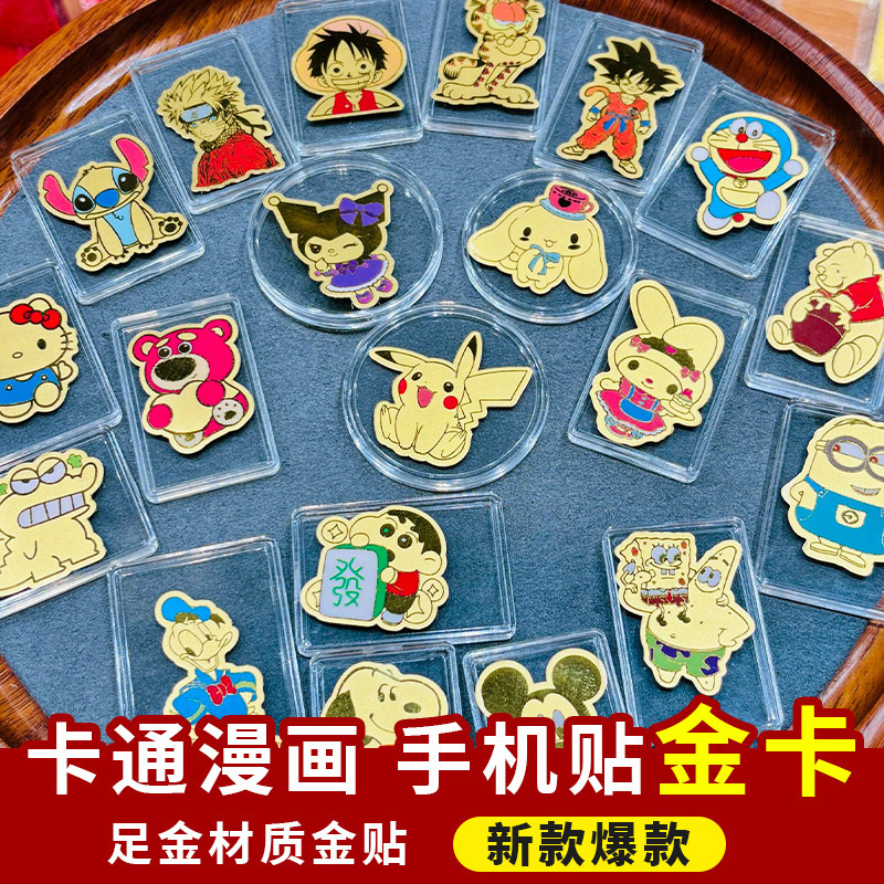 足金999卡通金片手机贴玉桂狗库洛米蜡笔小新皮卡丘哆啦A梦泡玛特