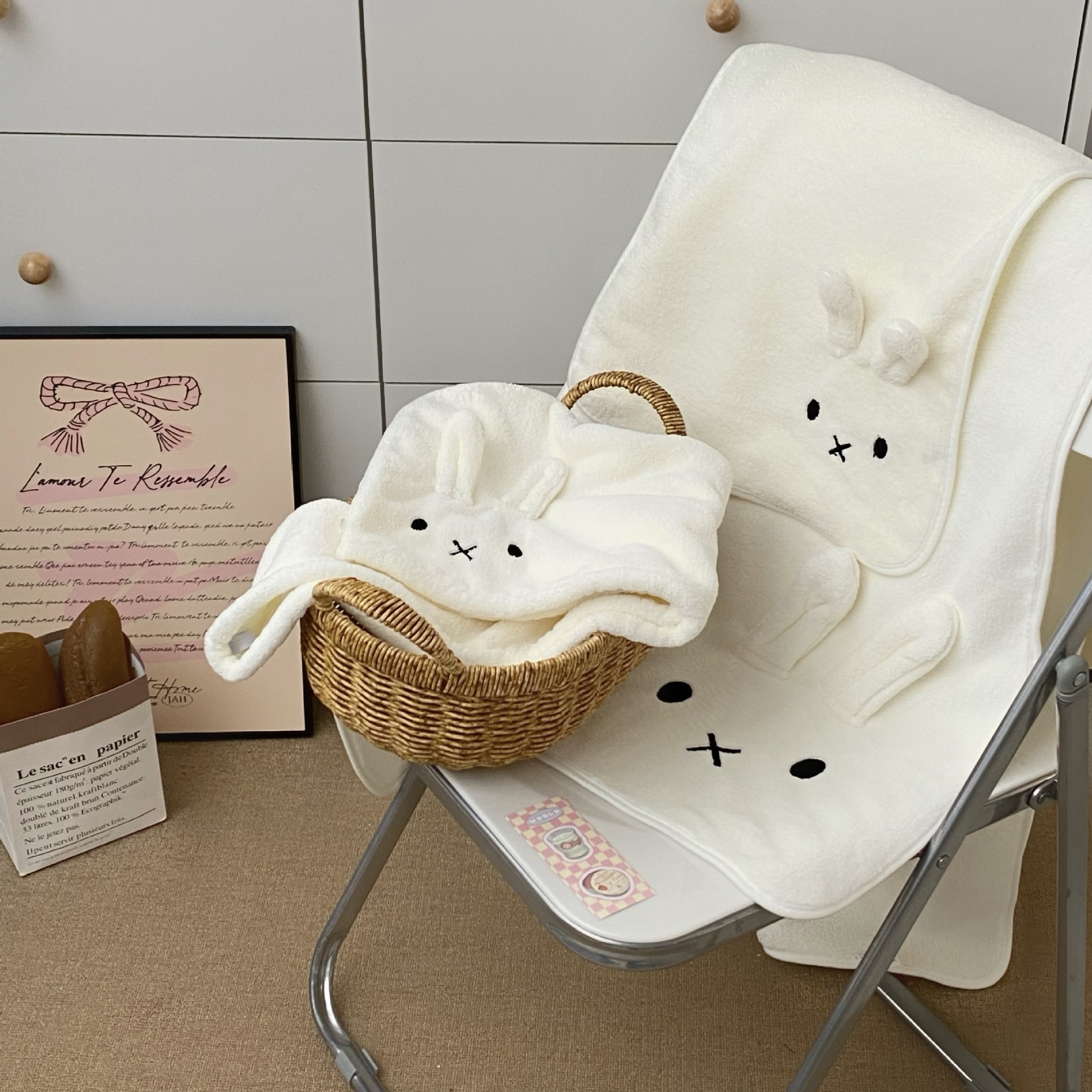 可爱小白兔2025新款女加厚珊瑚绒吸水速干卫生间毛巾干发帽洗澡巾