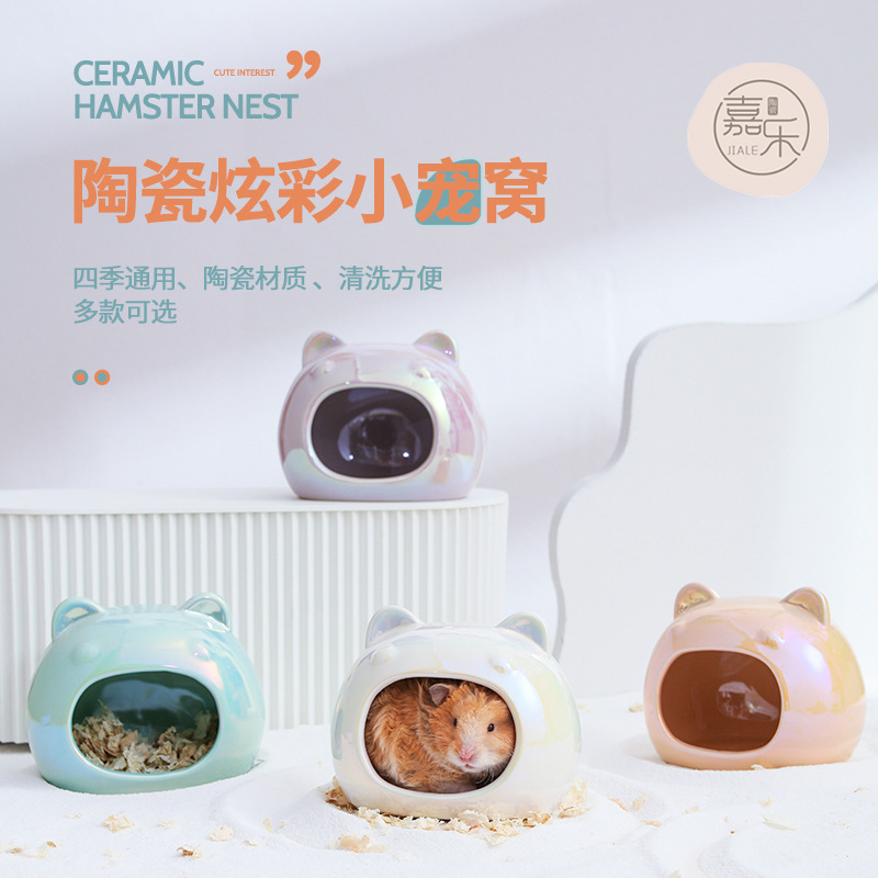 Grosir Musim Panas sarang keramik hamster besar kandang pelarian perlengkapan kandang hewan peliharaan kecil pencegahan heatstroke ins sarang beruang angin persediaan hamster