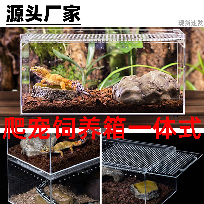 Kotak makan akrilik terintegrasi anti bocor memanjat hewan peliharaan tanduk laba-laba kodok istana penjaga ular reptil dalam persediaan dan pemasaran