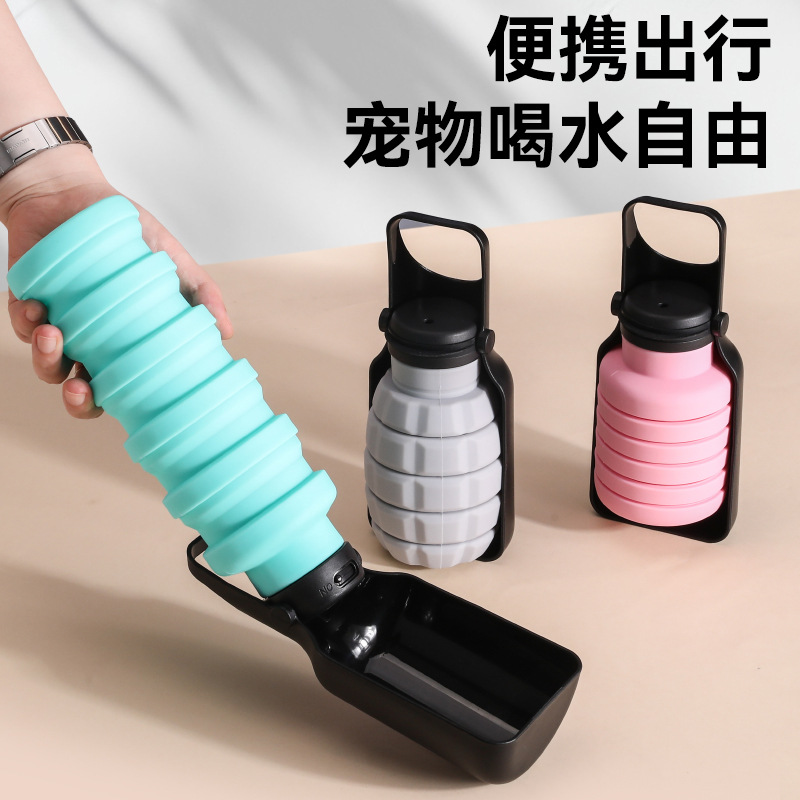 Cangkir Air Hewan Peliharaan Silikon Luar Ruangan Ramah Lingkungan Anjing 500ml Pengumpan Air Keluar Portabel Kaliber Besar Ketel Air Lipat