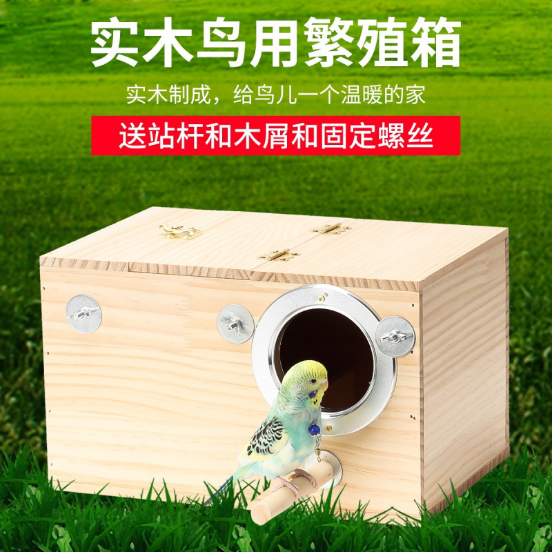 Kotak pengembangbiakan kayu solid burung beo hitam putih kulit harimau Kotak pengembangbiakan burung beo horisontal