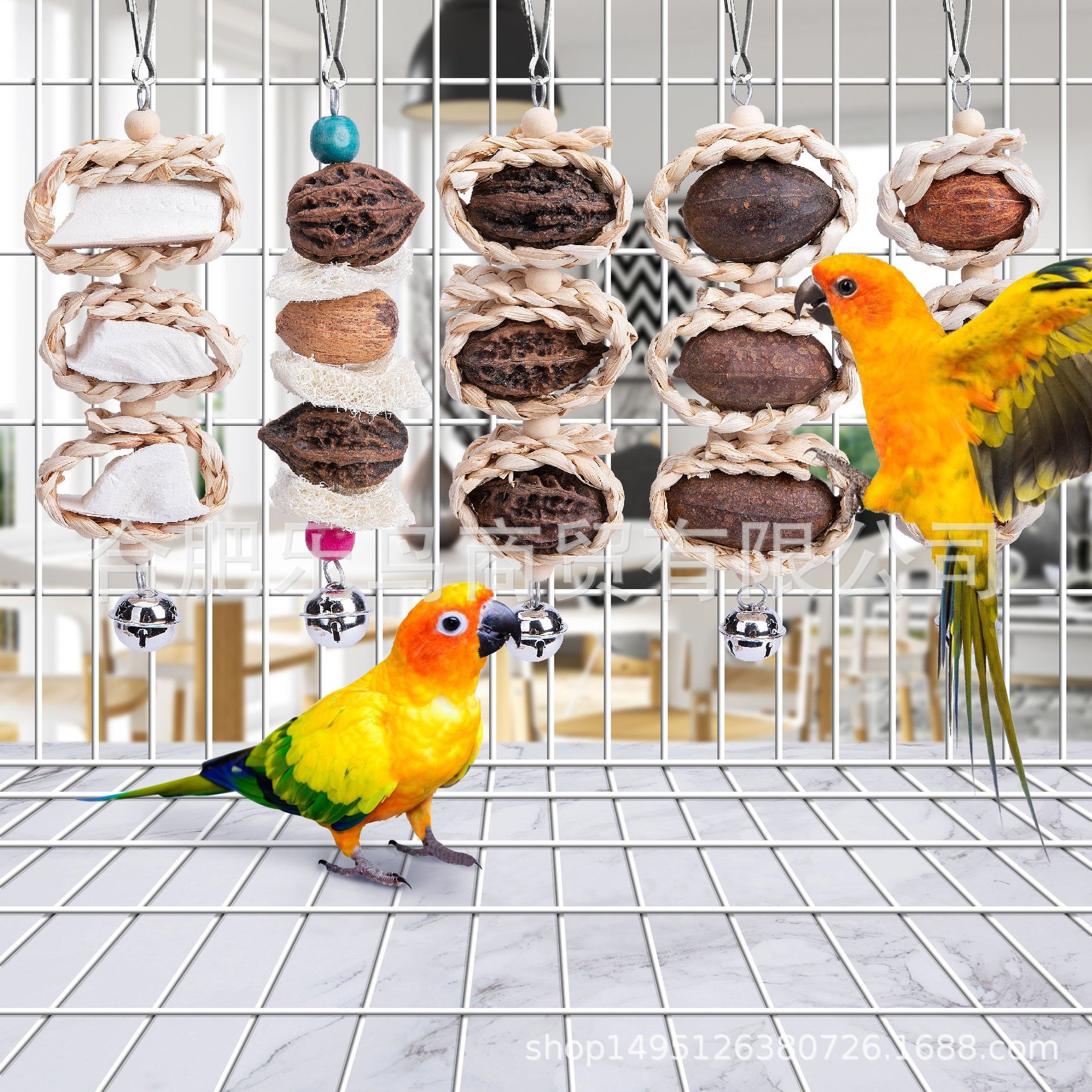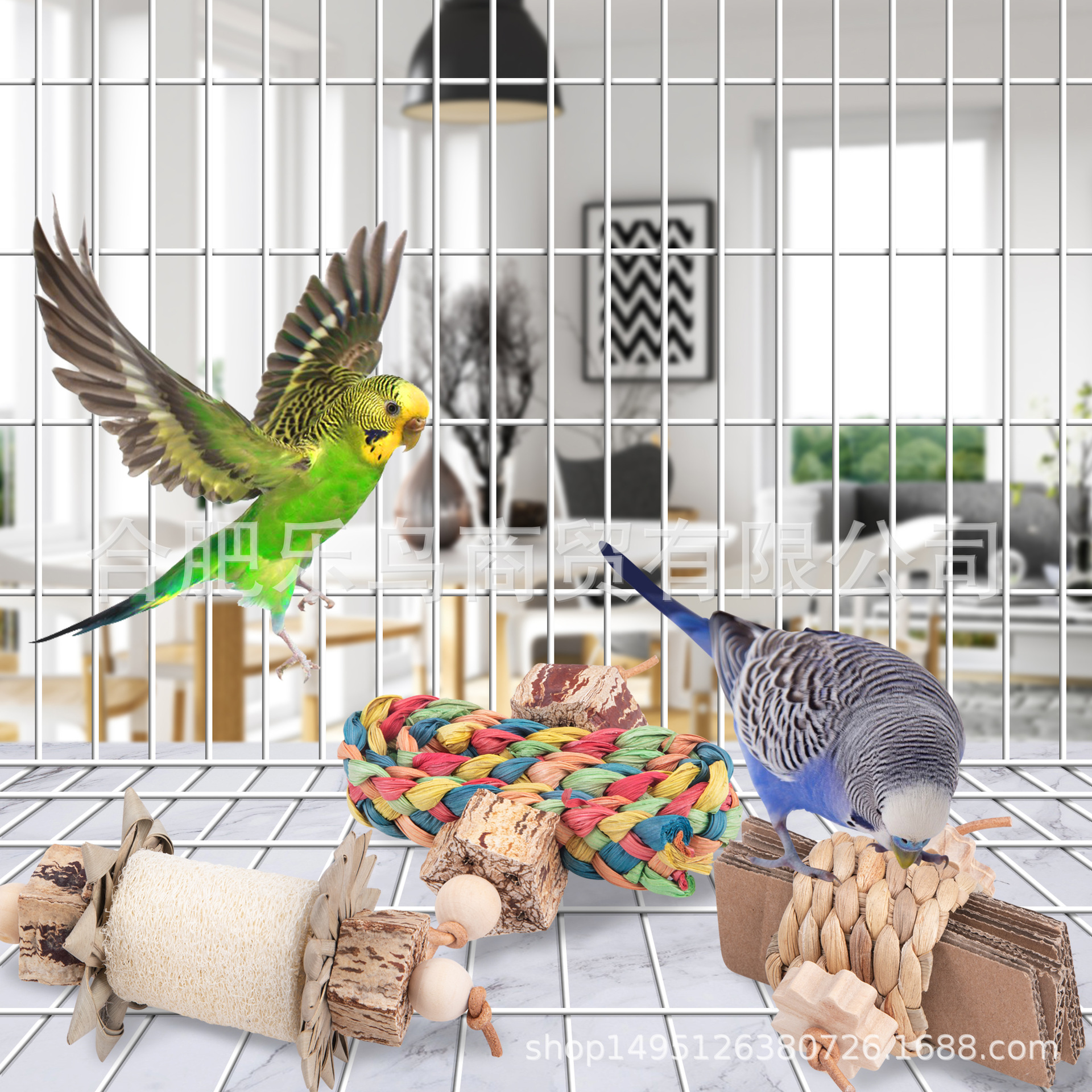 Mainan burung beo ekspor lintas batas perlengkapan gigit burung berdiri batang burung dekorasi dalam tali gigitan puzzle pereda kaku mulut Gerinda