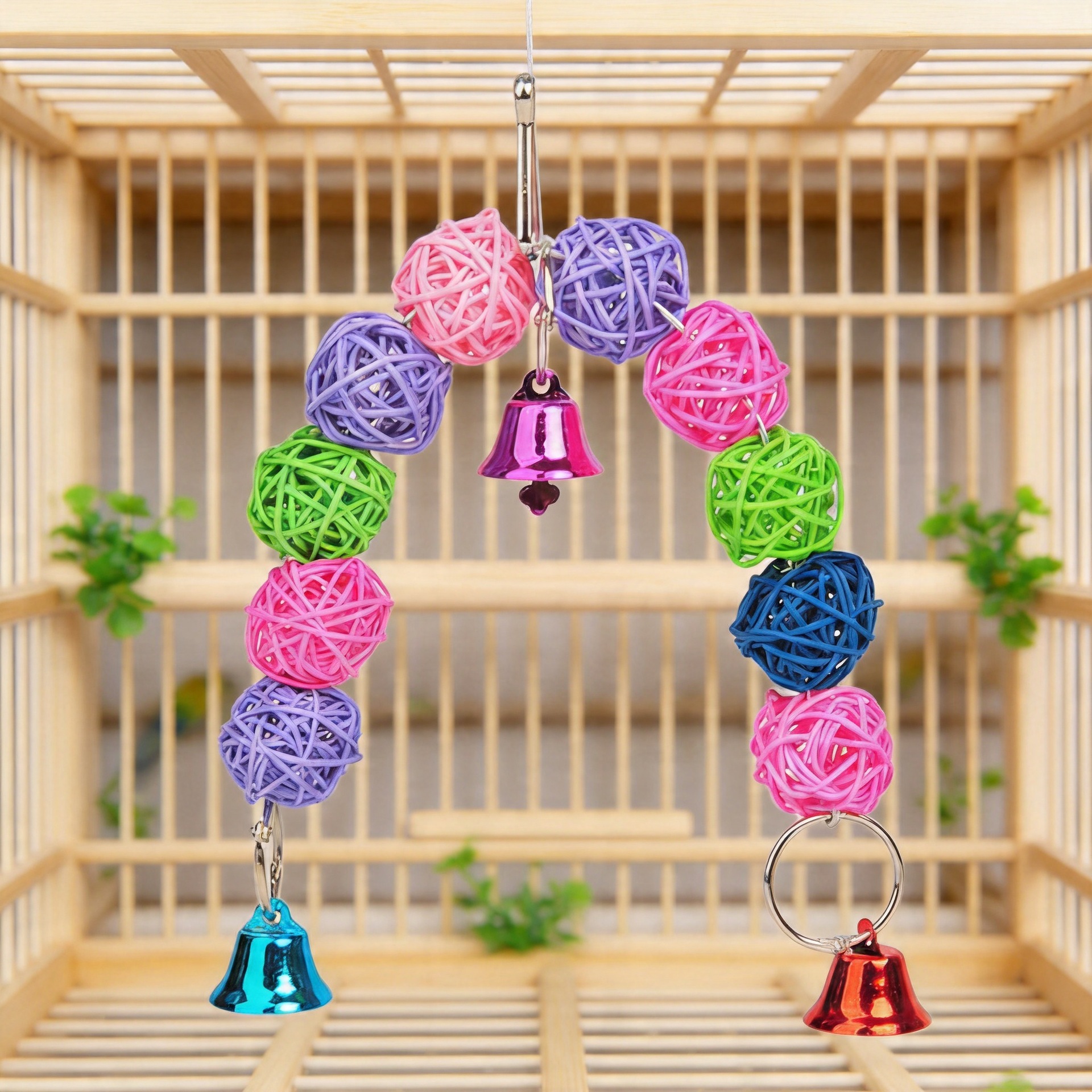 Mainan Burung Rotan Burung Beo Mainan Burung Kandang Gantung Mainan Burung Bola Rotan Kayu Tali Bel Perhiasan Hewan Peliharaan Tenun Buatan Tangan
