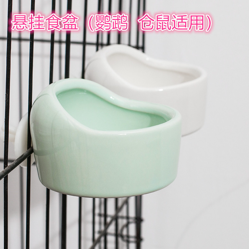 Kotak makanan burung nuri gantung Mini, mangkuk makanan hewan peliharaan keramik anti-benturan Beruang Emas mulut miring