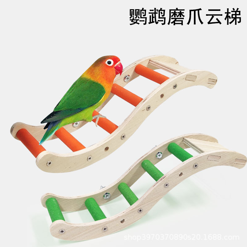 Mainan Nuri kulit harimau tali panjat tangga kayu tangga Gerinda cakar mulut burung peony interaktif perlengkapan aksesori ayunan tangga