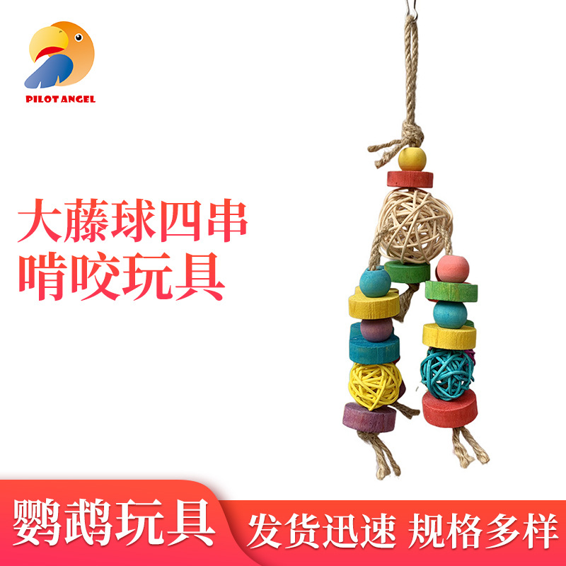 Mainan burung beo persediaan mainan burung persediaan Mainan Gigit kayu bola rotan tali Mainan Gigit kayu