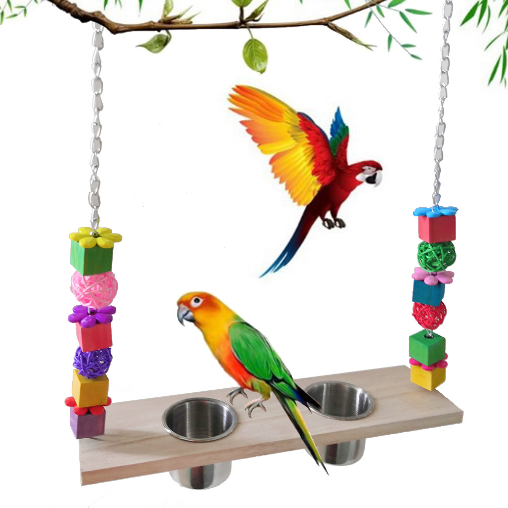 Persediaan burung ayunan burung bayan dengan cangkir makanan ayunan berdiri mainan mencari makan burung bayan cocok untuk kulit harimau peony Xuanfeng