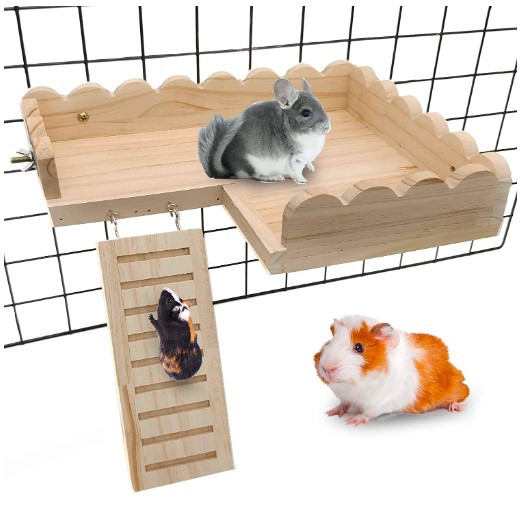 Persediaan Hamster mainan dasar kandang kayu padat baki platform Beruang Emas dasar platform Totoro platform dengan tangga