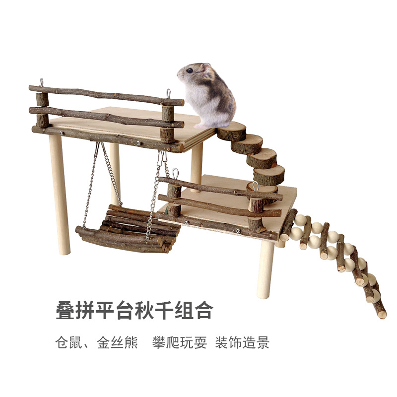 Mainan Hamster Beruang Emas kayu dua lapisan platform apple pagar cabang tangga ayunan kombinasi hamster perlengkapan lansekap