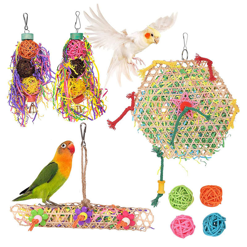 Mainan burung setelan kombinasi warna kertas bola rotan mainan perlengkapan burung peralatan gigit ayunan gantung jembatan mainan burung beo