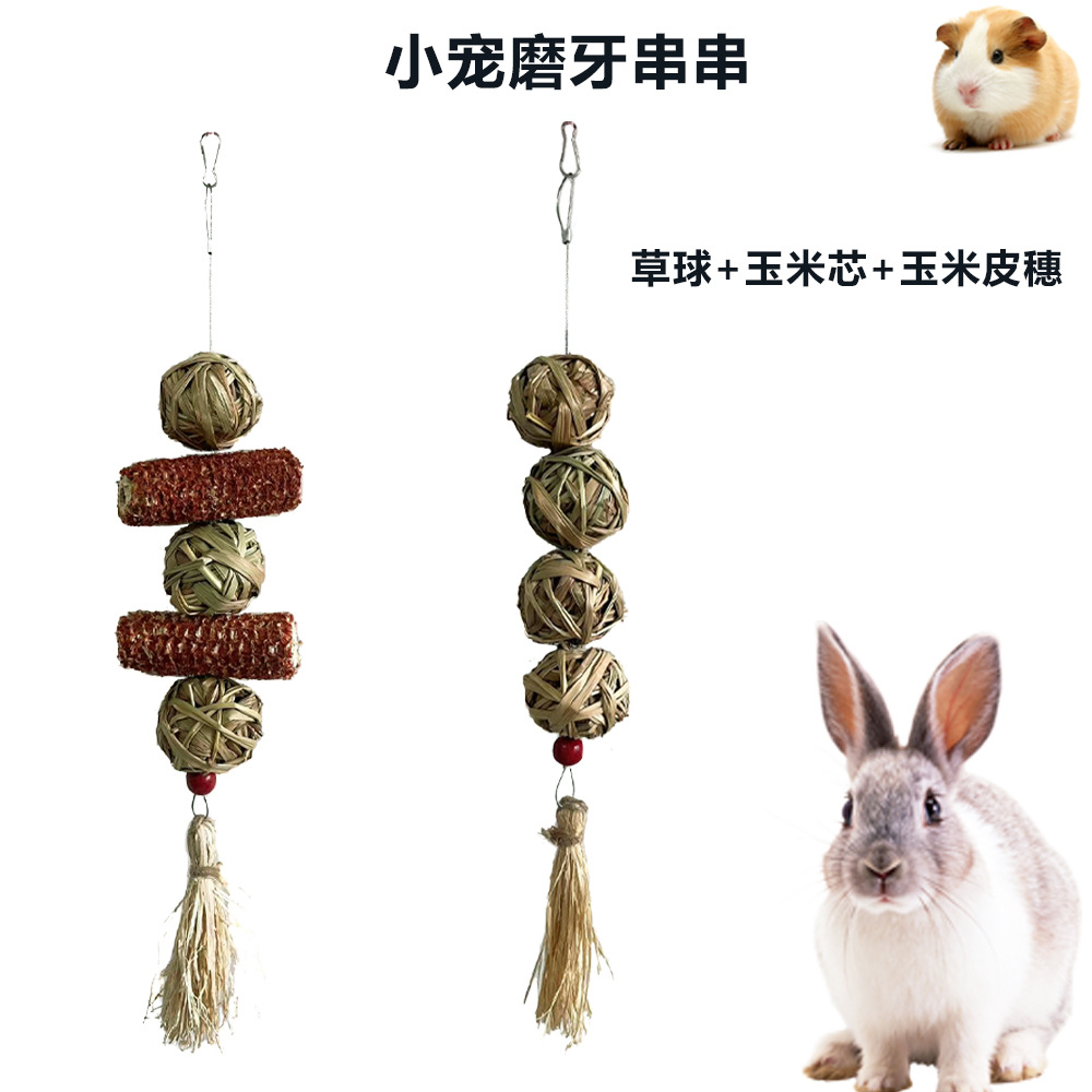 Bola jerami senar molar hewan peliharaan kecil menghilangkan kaku mainan kelinci hamster Totoro mainan hewan peliharaan perlengkapan liontin lanskap