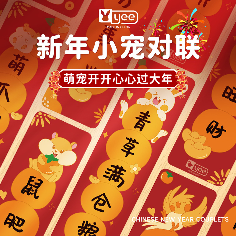 Yee stiker pintu kreatif dekorasi lanskap kandang beruang emas couplet happy new Tahun Baru couplet Festival Musim Semi