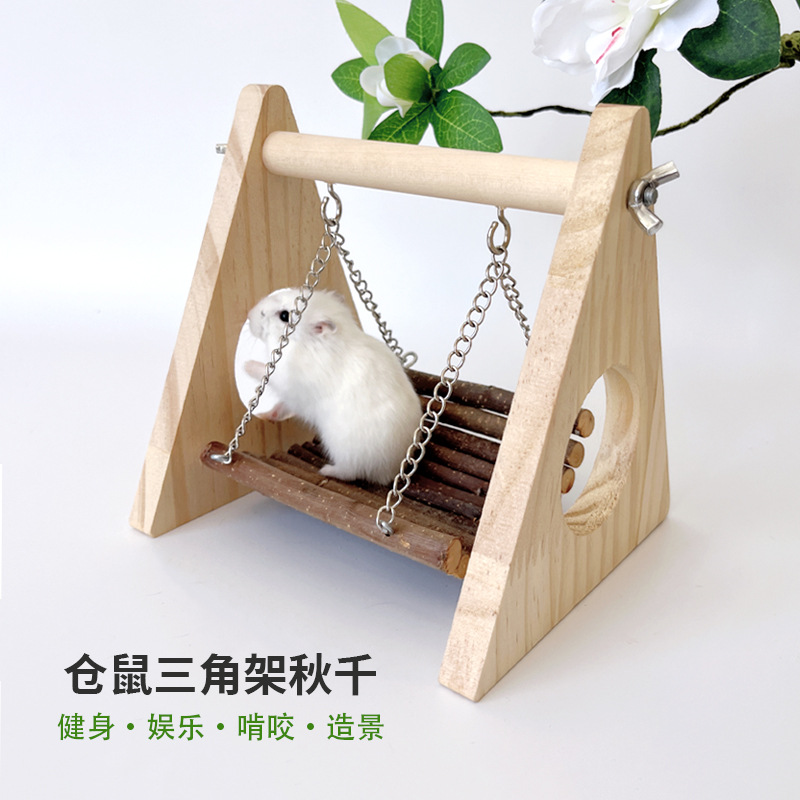 Mainan hamster kayu tempat tidur gantung ayunan tongkat apel