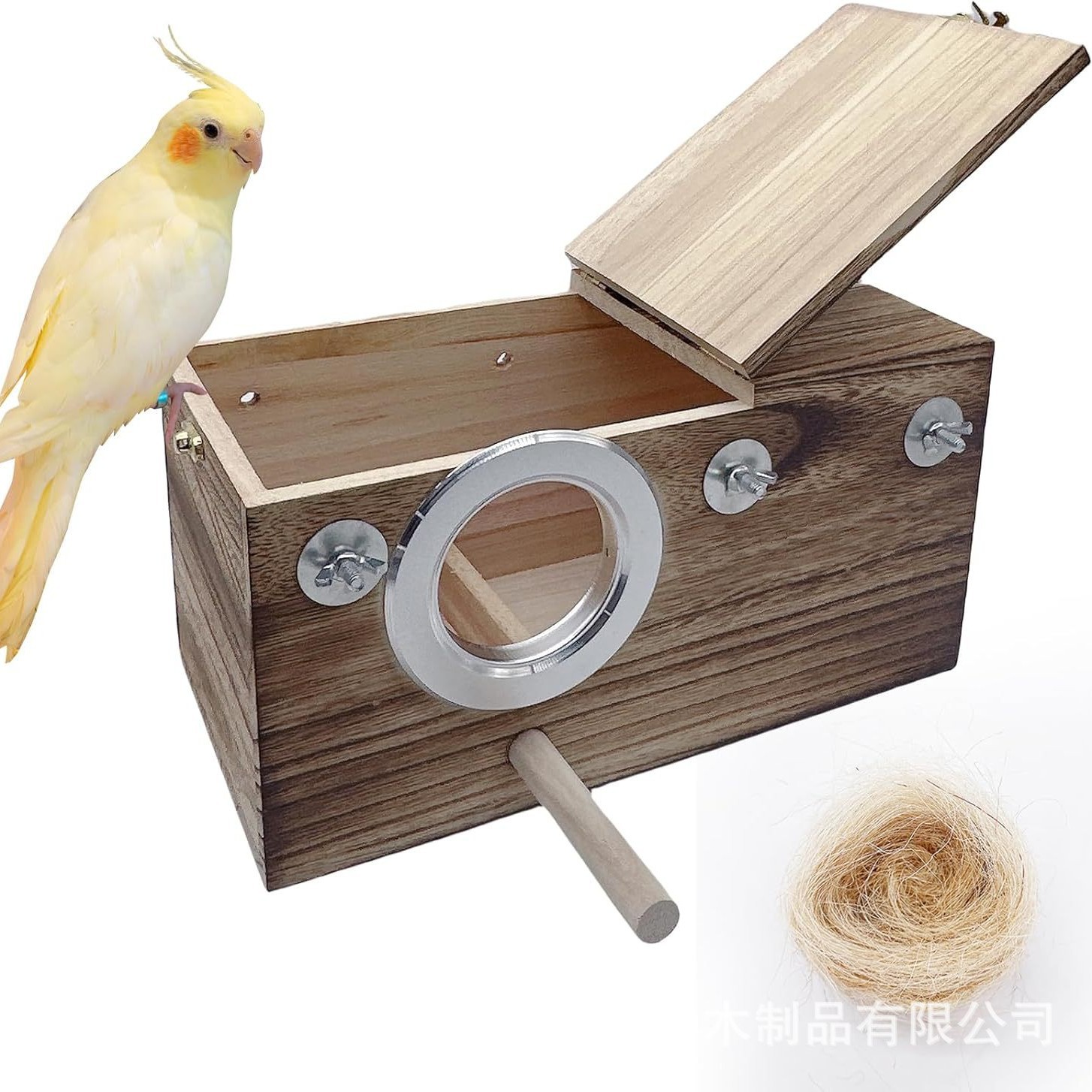 Kotak Pembibitan Burung Beo Empat Musim Universal Kayu Sarang Burung Ukuran Besar Ukuran Kecil
