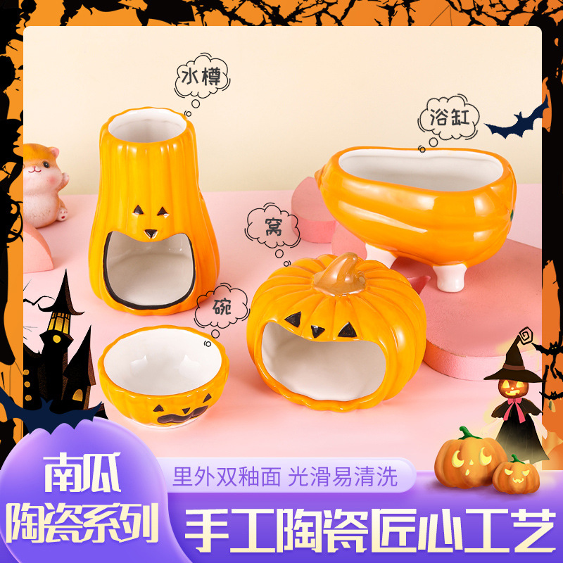 Persediaan harian hewan peliharaan sarang keramik mangkuk makanan hamster bak mandi labu kreatif penggunaan ganda braket ketel dekorasi Halloween