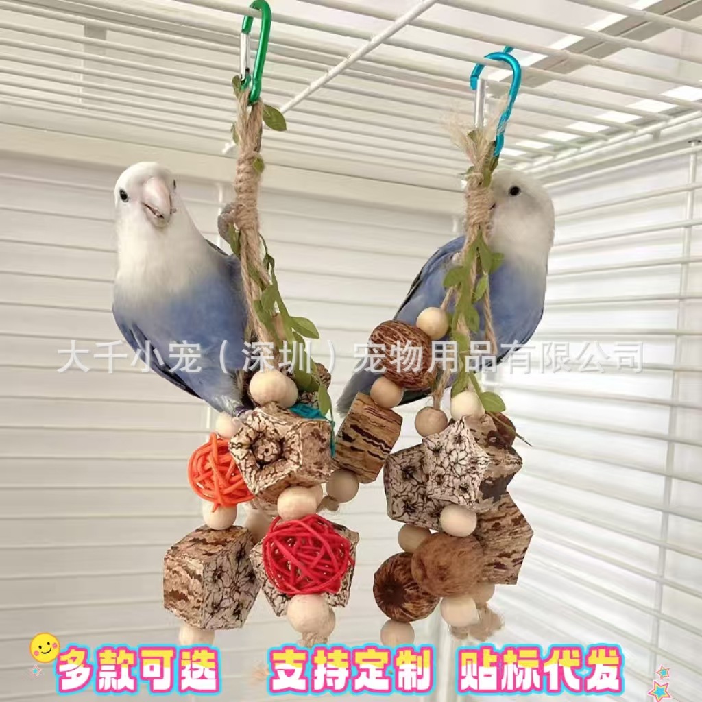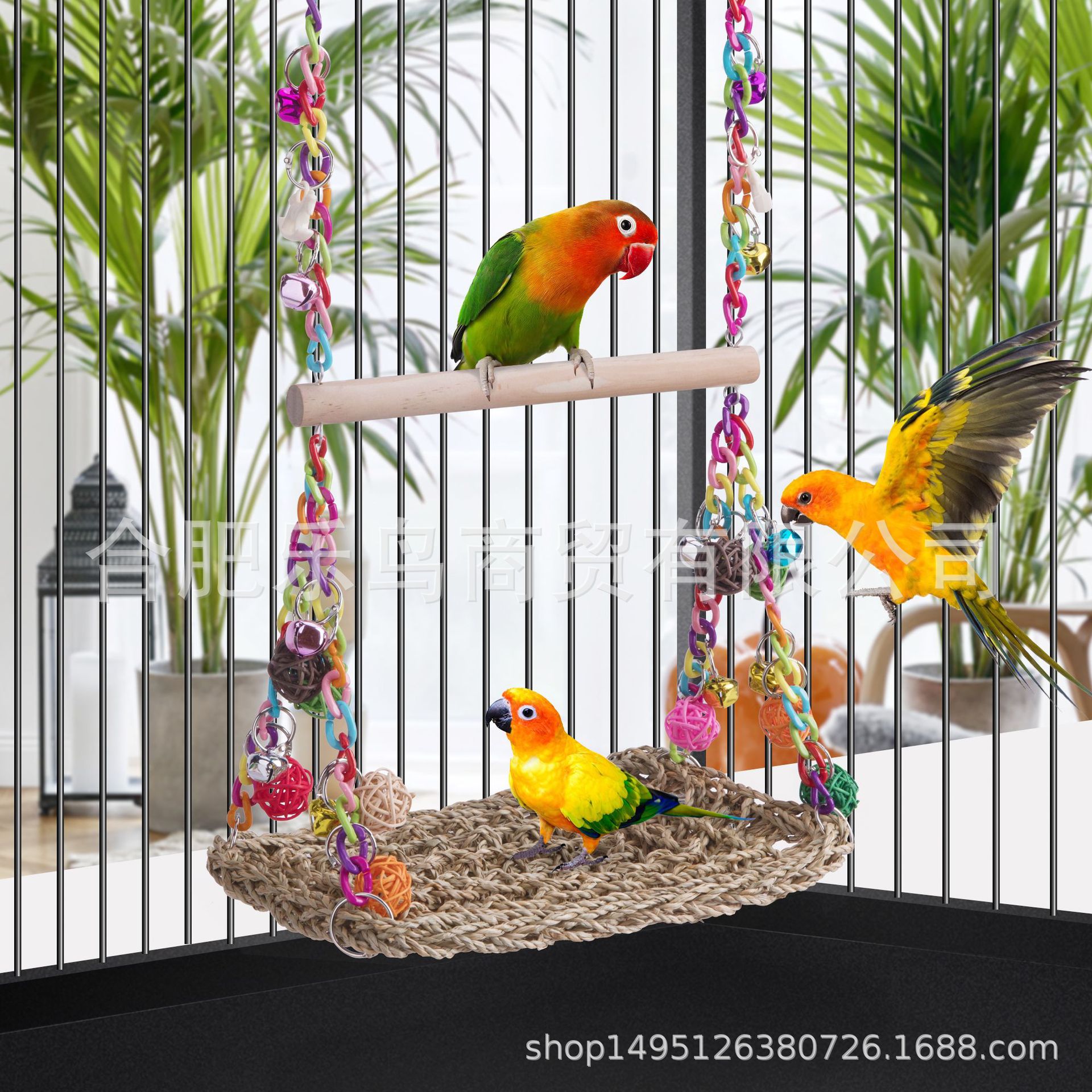Persediaan burung mainan burung beo mainan empat musim tanaman akuatik tempat tidur gantung bola rotan ayunan rantai warna lapisan ganda ayunan