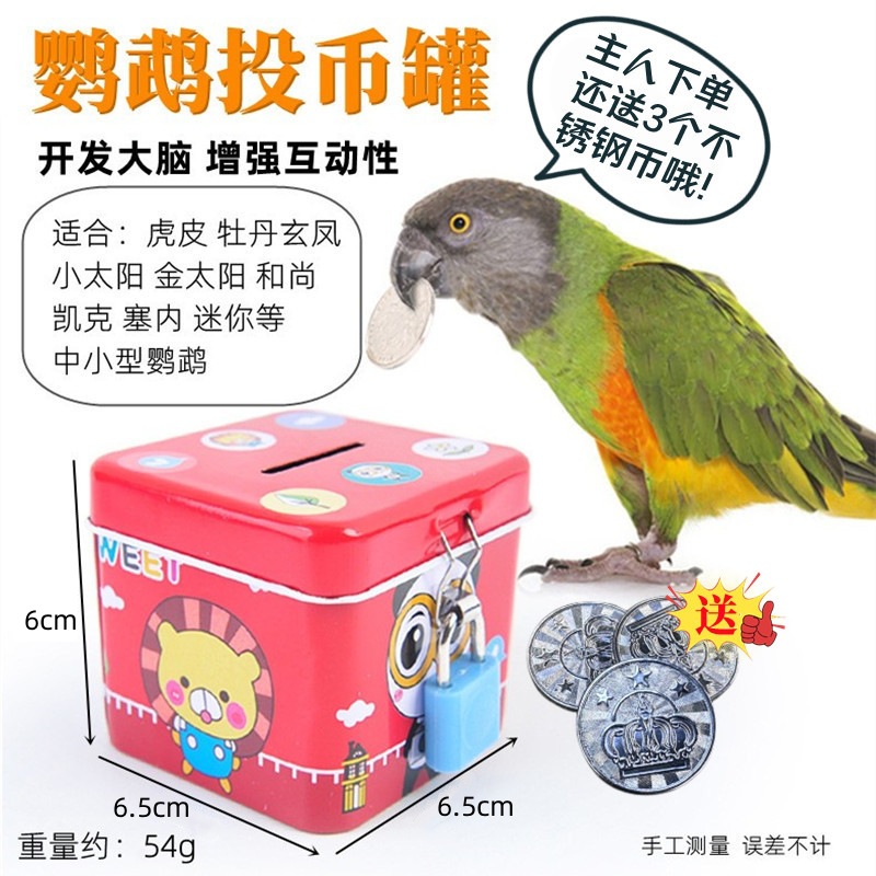 Perlengkapan latihan mainan burung beo alat koin edukasi celengan babi mini pintar Xuanfeng celengan