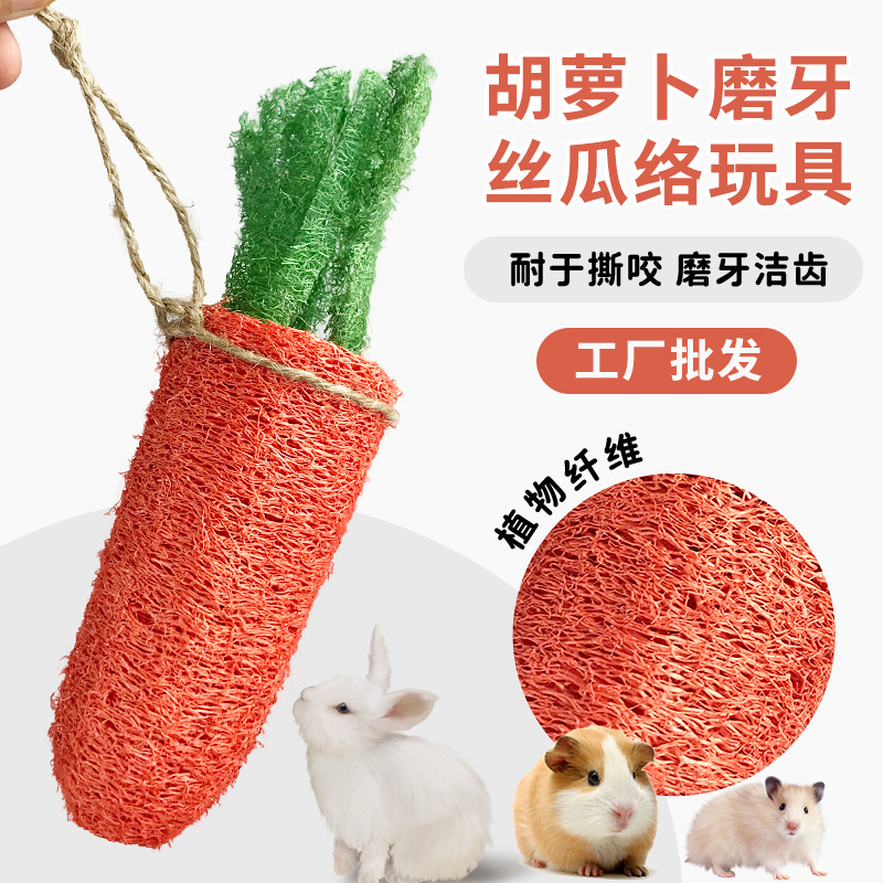 Mainan kelinci peliharaan molar alami loofah kelinci mainan wortel Marmot Totoro molar pembersih gigi makanan ringan tahan gigitan