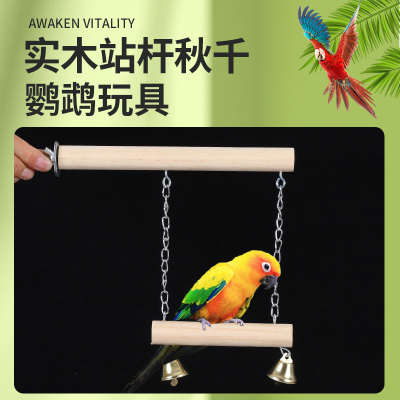 Persediaan burung bayan jembatan gantung kayu ayunan burung berdiri Xuanfeng kulit harimau peony Mainan Gigit persediaan burung