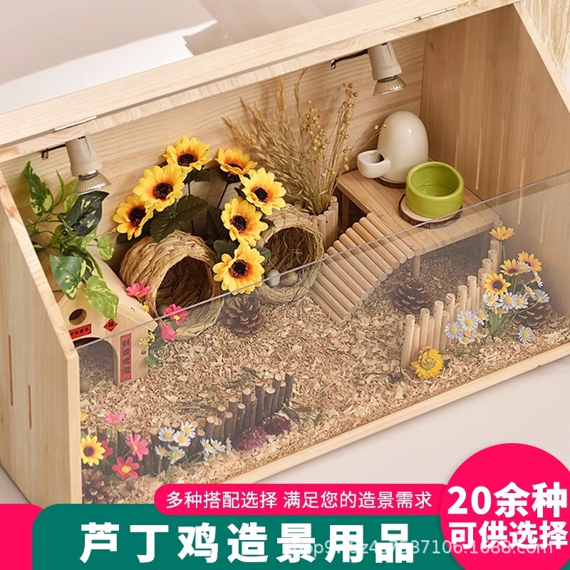 Lubing kandang ayam, sarang rumput ayam hiasan pagar kayu, perlengkapan rumah pemberi makan platform, pagar kayu